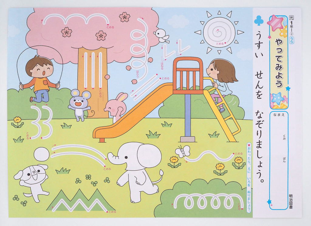 WORK / お仕事小学校国語テスト用イラスト 明治図書出版様よりご依頼をいただき、小学校の国語テストのためのイラストを制作しました!小学校に入って初めての国語のテストの問題になるそうで、線をなぞる練習問題になっています。イラストで緊張が少しでもほぐれて、国語を楽しく勉強できるお役に立てましたら嬉しいです。 クライアント:明治図書出版制作時期:2023年9月〜使用ソフト:photoshop