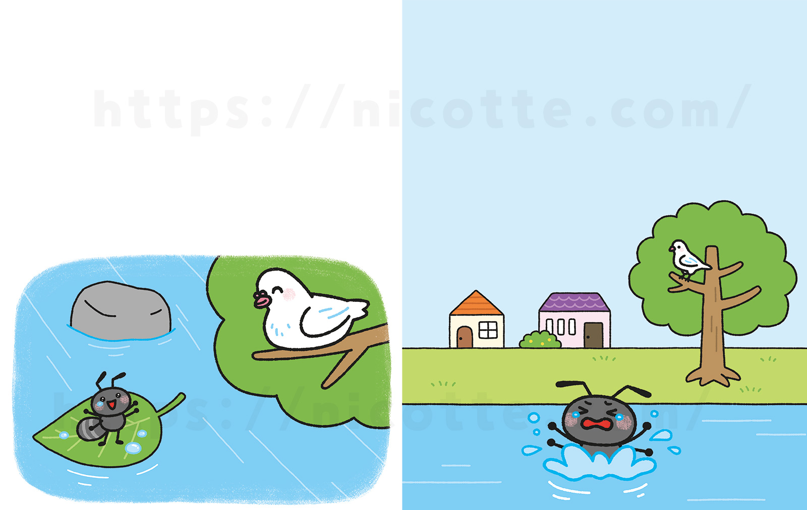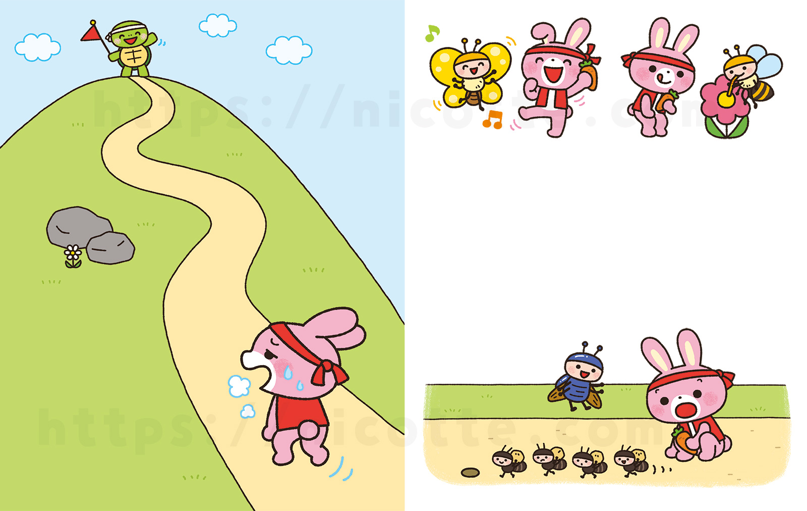 WORK / お仕事イソップ物語 うさぎとかめ カラスと水差し 金の卵を産むガチョウ 欲張りな犬 アリと鳩 台湾の出版社、采實文化出版集團様よりご依頼をいただき、イソップ童話の、5つのお話のイラストを制作いたしました。ざっくりとしたレイアウトと描く内容のご指定をいただいての制作でした。台湾のお子さんたちに、絵本を楽しんでもらえたら嬉しいです。※現在のところ、日本での販売はありません 表紙イラスト:おおうちあす華さん クライアント:采實文化出版集團制作時期:2024年12月〜使用ソフト:photoshop
