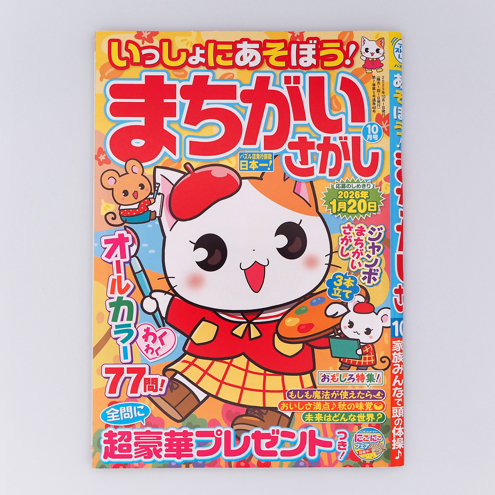 WORK / お仕事いっしょにあそぼう!まちがいさがし10月号 Question71 ワクワクドキドキおうち映画館 いっしょにあそぼう!まちがいさがし2025年10月号(マガジン・マガジンさま)まちがいさがし1問を制作しました!ぜひ本誌でまちがいを探してみてくださいね 成島真衣さんの猫ちゃんのイラストが目印です♪ クライアント:マガジン・マガジン制作時期:2025年 5月〜発売時期:2025年8月19日発売使用ソフト:photoshop